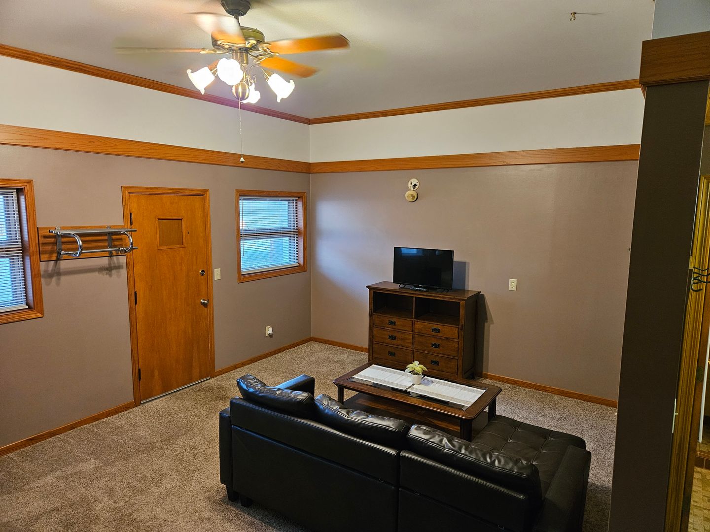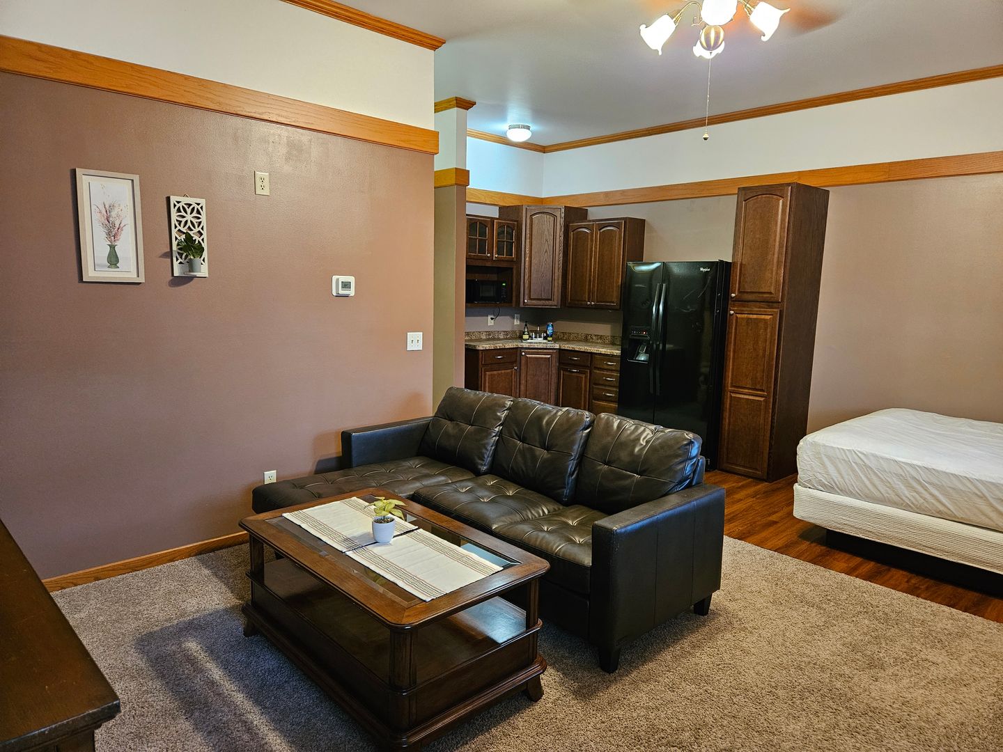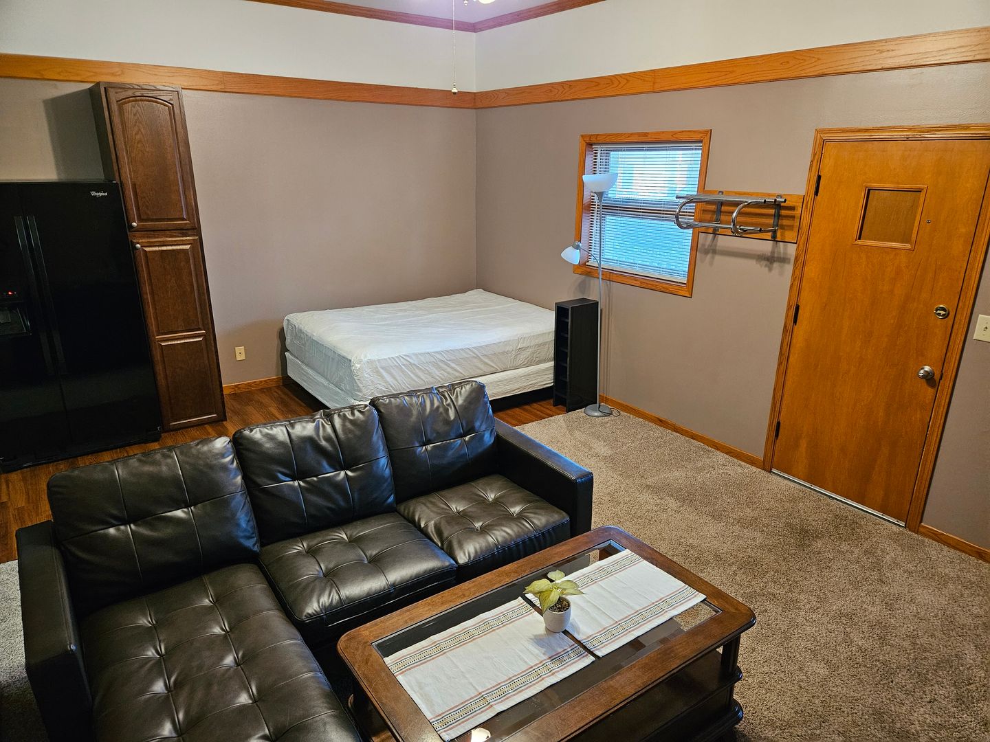 Furnished Efficiency unit for rent in Tomah, WI. Unit includes queen bed, TV, dresser, couch, coffee table, fridge, toaster oven with 2 burners cook-top, and microwave. All utilities (electric, heat, A/C, water, sewer, and garbage) and complimentary cable included in rent. Dogs allowed (max of 2) for additional $50 per month pet rent and $50 pet deposit. Month-to-month lease. Rent $950, Security Deposit $500. No smoking. Laundry on-site. Background and credit check are required. Available 5/1/2026