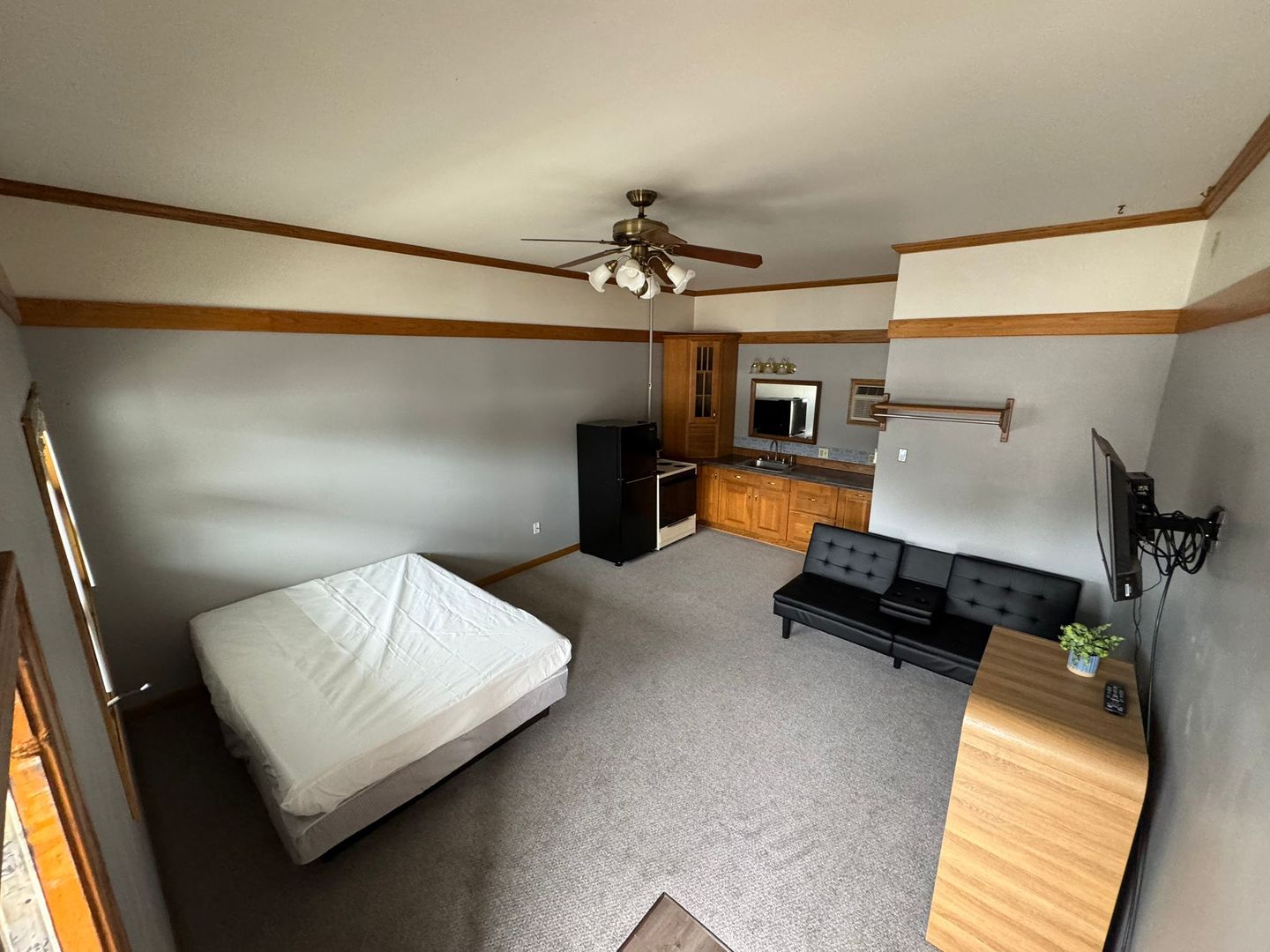 Furnished Efficiency for rent in Tomah, WI. Unit includes queen bed, TV, dresser, fridge, stove, and microwave. All utilities (electric, heat, A/C, water, sewer, and garbage) and Charter cable included in rent. Dogs allowed (max of 2) for additional $50 per month pet rent and $50 security deposit. Month-to-month lease. Rent $950, Security Deposit $575. No smoking. Laundry on-site. Background and credit check. Available 12/3/2025.